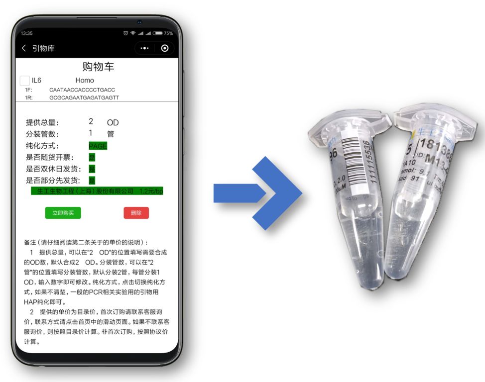 只要在引物库中将查找到的序列加入“购物车”,在购物车中点击“立即购买”,即可享受由生工生物提供的优质引物。