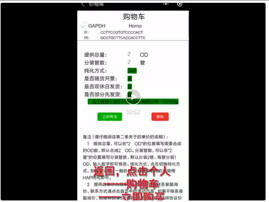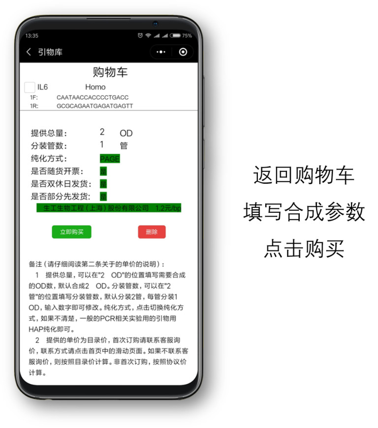 点击“立即购买”之后,会在生工生物自动生成引物合成订单,我们将按照您的序列,尽快为您合成。