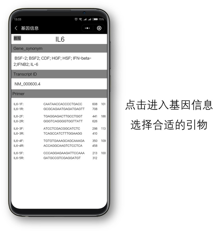 点击基因名后的收藏则将该引物保存在“个人”中的收藏页中,方便下次查阅;