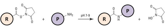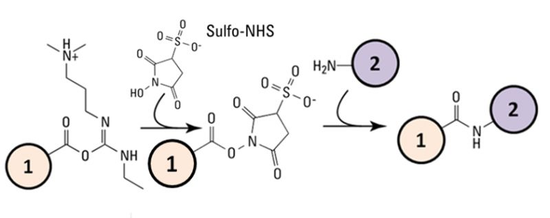 氨基(-NH2)一般和N-羟基琥珀酰亚胺NHS基团反应产生交联