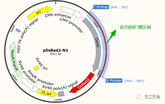 在图谱或者序列页面,按住Ctrl选中F Primer和R Primer,会将扩增产物的序列选中: