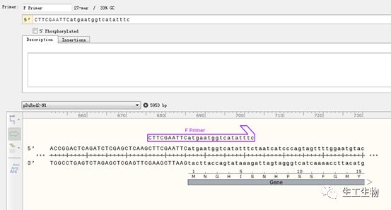 按Ctrl+R调出引物添加页面,正向引物选择Top Strand,正向引物就会显示在页面中。
