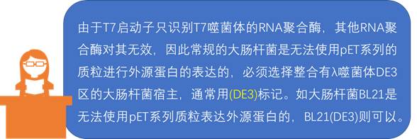 T7启动子是来自于T7噬菌体的,能够对T7 RNA聚合酶有特异性反应的强启动子,是启动T7噬菌体基因转录的一段序列。强大的T7启动子完全专一受控于T7 RNA聚合酶,而高活性的T7 RNA聚合酶合成mRNA的速度要比大肠杆菌RNA聚合酶快5倍。因此T7启动子和T7 RNA聚合酶系统成为大肠杆菌表达系统的主流。
