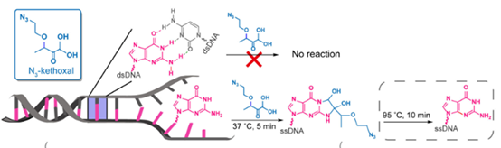 KAS-seq基于叠氮基乙氧二羟丁酮(N₃-kethoxal)的独特化学性质: