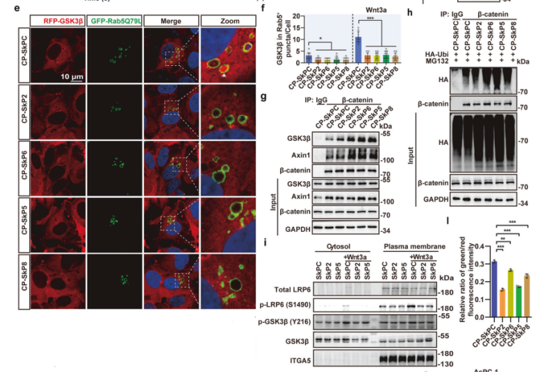 Fig.5 活性短肽抑制GSK3β进入MVBs,并促进了GSK3β, Axin1, and β-catenin之间的相互作用以及随后β-catenin的降解。