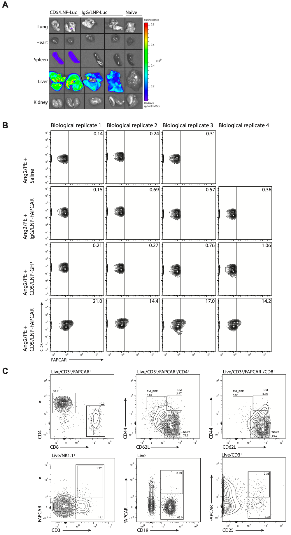 CD5靶向脂质纳米粒在体内产生基于mRNA的FAPCAR T细胞。