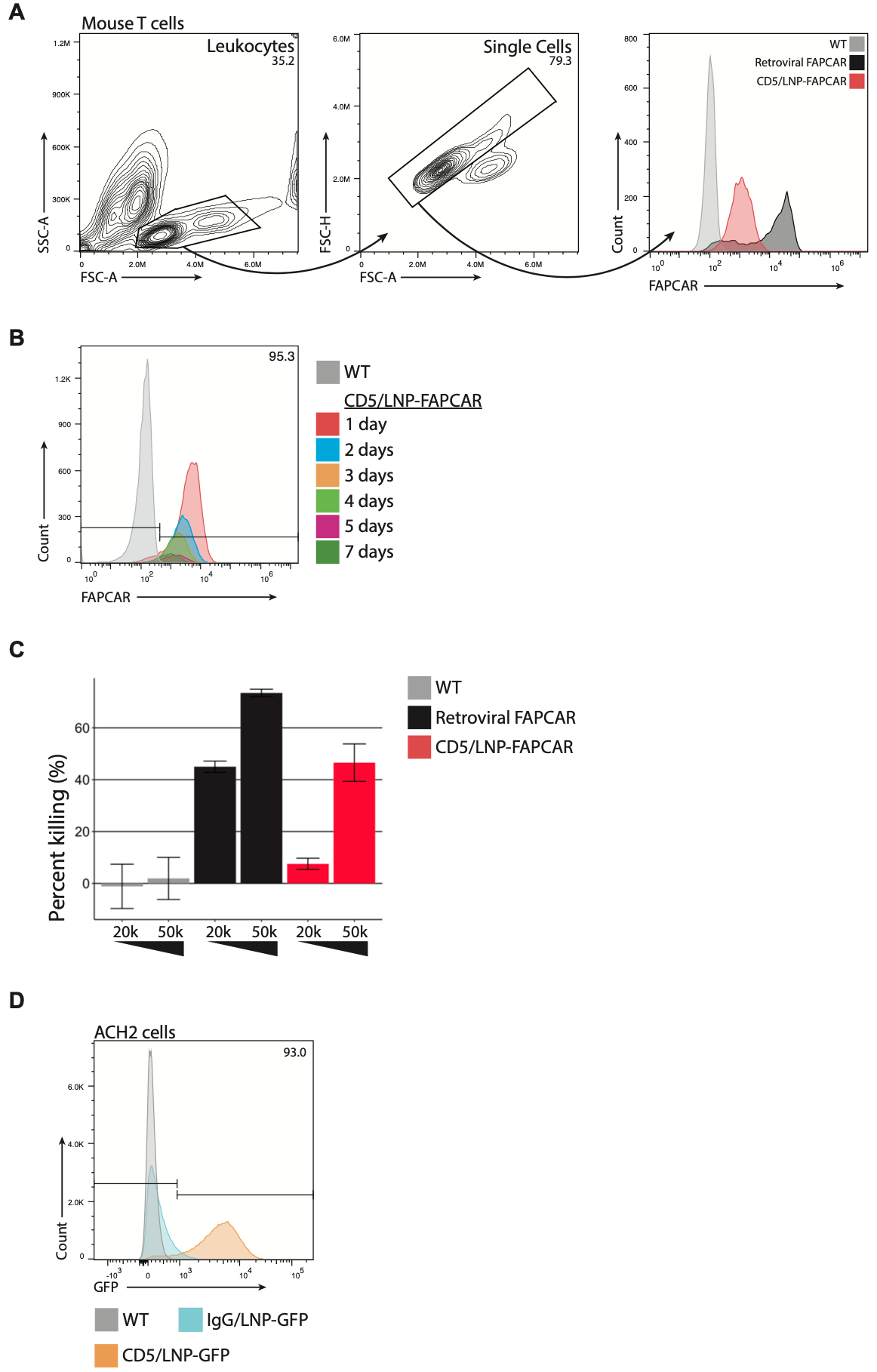 CD5/LNP-FAPCAR在体外产生功能性、基于mRNA的FAP CAR T细胞。