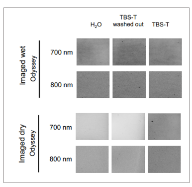 在使用荧光WB法检测低丰度蛋白时,整体载量高且背景自发荧光较低的NC膜是一个折中的选择。为了获得更强的信号,试剂供应商会建议将膜干燥后成像,但同时需要去除封闭液中的吐温20,有一项研究解释了这样操作的必要性。