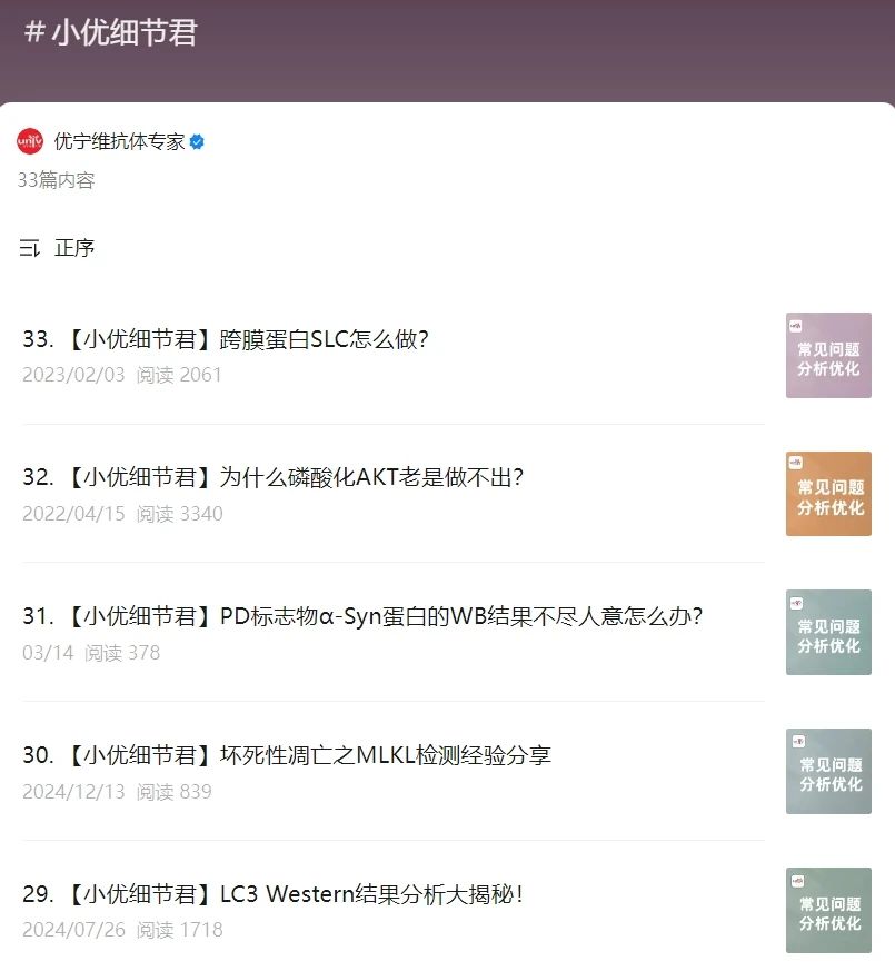 专栏将持续更新,请关注“优宁维抗体专家”,实时掌握实验技巧!