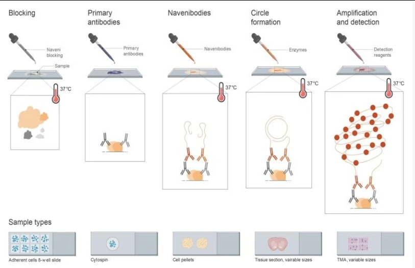蛋白翻译后修饰 (PTM) 是指蛋白质合成后发生的化学修饰,这些修饰可以改变蛋白质的结构、功能和定位,在细胞信号传导、代谢和疾病发生发展中发挥重要作用。瑞典Navinci公司研发的临近链接技术(Proximity Ligation Assay, PLA)为研究PTMs提供了一种高灵敏度和高特异性的方法。