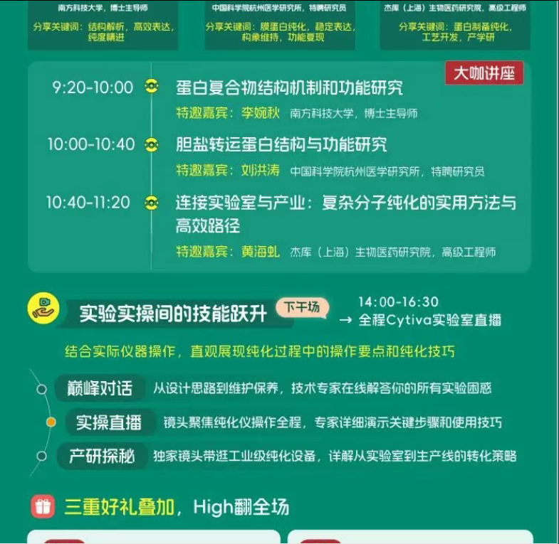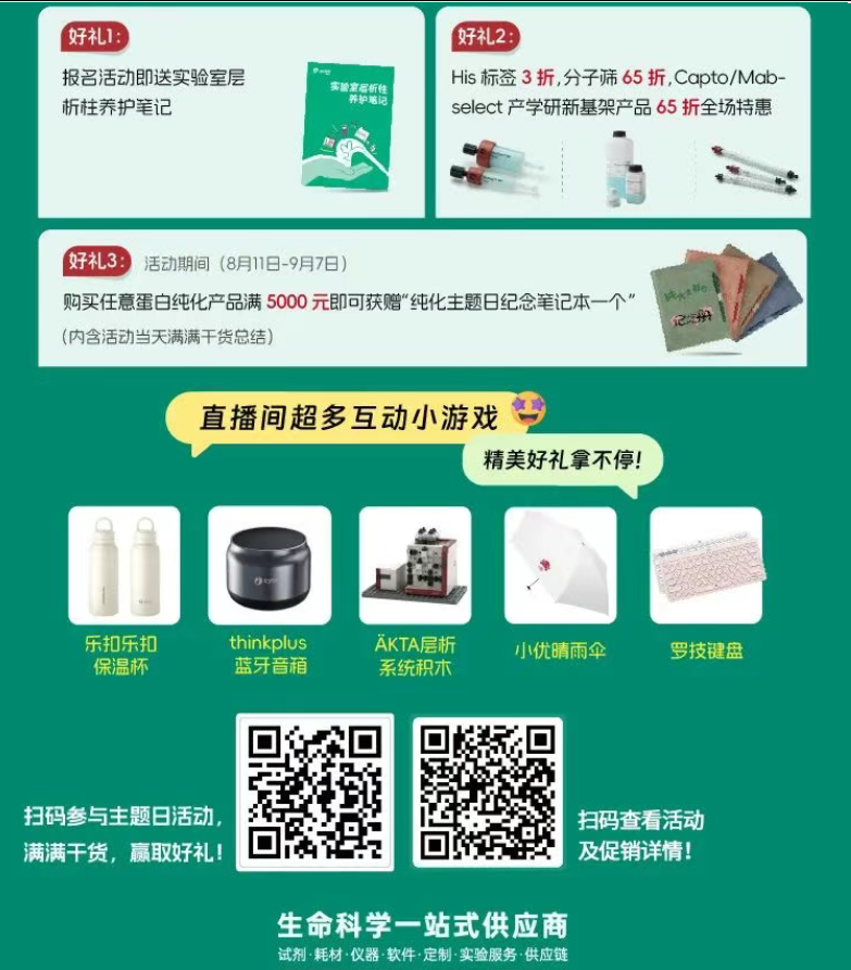 在疾病机制研究中,蛋白作为生命活动的关键分子,其功能和相互作用在疾病的发生发展中扮演着重要的作用。因此,深入研究蛋白质的结构和功能,对于揭示疾病发生,通路机制以及研发有效的治疗策略具有重要的意义。在这一过程中,蛋白纯化是不可或缺的关键步骤。掌握成熟的纯化方法并得到足量的高纯度高活性的蛋白,无论是对于蛋白功能,相互作用,或者蛋白结构研究都非常重要。如果你还没有接触过蛋白纯化,或者在纯化中遇到一些难题,在蛋白纯化主题日中都能找到方法和答案。