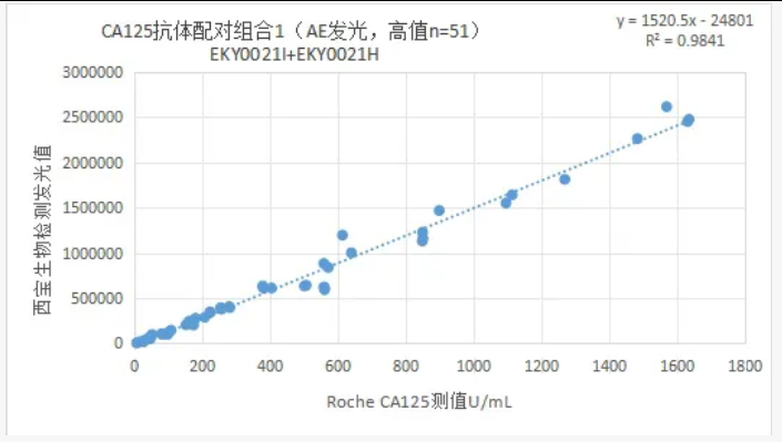 抗体配对组合1:CA125抗体(货号:EKY0021I)包被羧基磁珠+CA125抗体(货号:EKY0021H)标记吖啶酯;