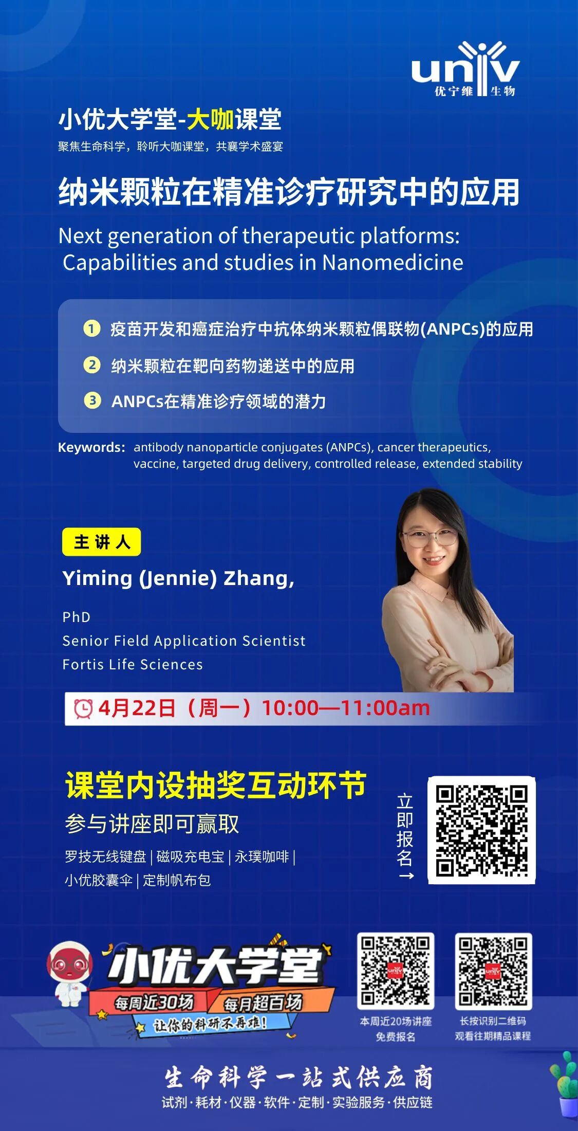 想要了解纳米颗粒在药物递送和精准诊疗中的应用和进展嘛?4月22日,下周一上午10点,我们特别邀请了在纳米颗粒研究领域具有多年经验的Nano Composix科学家为大家带来最新讲座,扫码二维码进行报名哦!