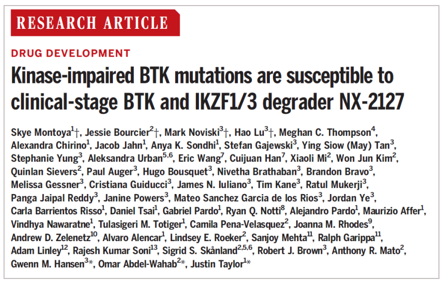 Science |NX-2127介导BTK降解治疗慢性淋巴细胞白血病CLL思路解析