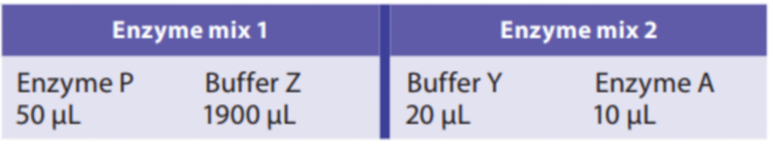 c) 酶混合物 mix 1 和酶混合物 mix 2 配置: