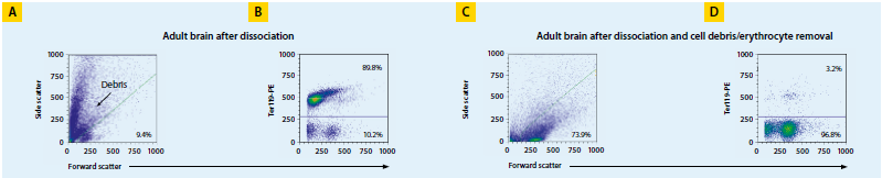 1. 用适量的预冷 1x 红细胞去除液重悬细胞(≤2 个小鼠脑组织),不要剧烈振荡。