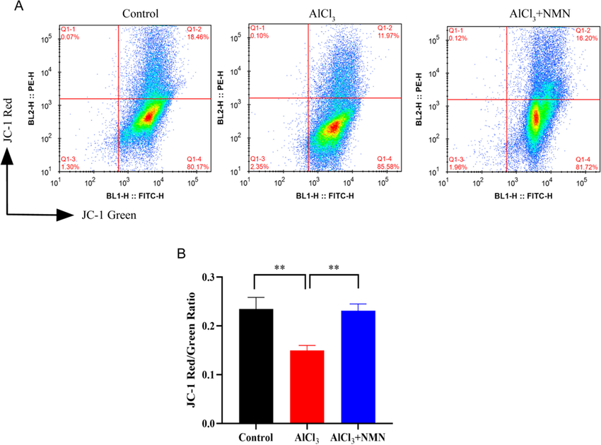 ▲图2 JC-1染色后流式定量分析结果