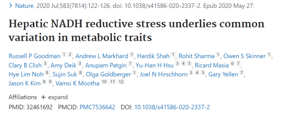 GCKR变异通过影响NADH/NAD⁺比值调控代谢性状