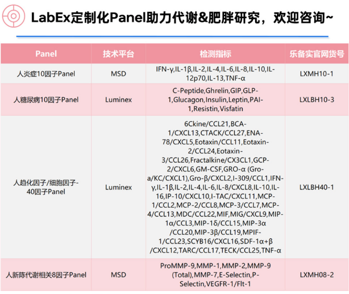 常见代谢研究多因子检测panel汇总(更多详情请扫描文章结尾海报二维码查看):