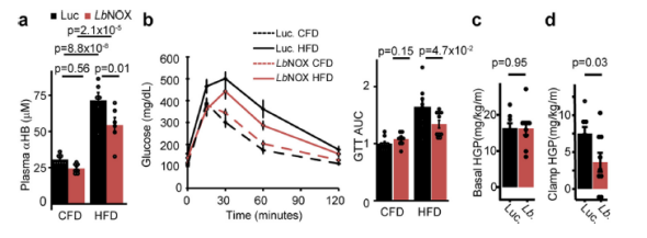 1. LbNOX降低HFD小鼠的αHB、改善葡萄糖耐受性和肝脏胰岛素抵抗。