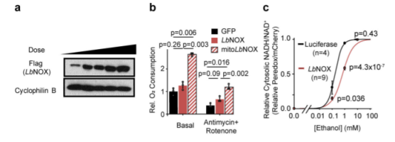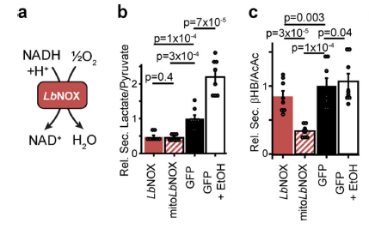 LbNOX可特异性降低细胞质NADH/NAD⁺比值