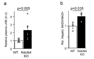 2. Ndufs4 KO小鼠中也见αHB和NADH/NAD⁺升高