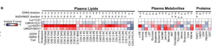 1.28种GCKR相关代谢物(如TG、FGF21、丝氨酸)对NADH/NAD⁺敏感。