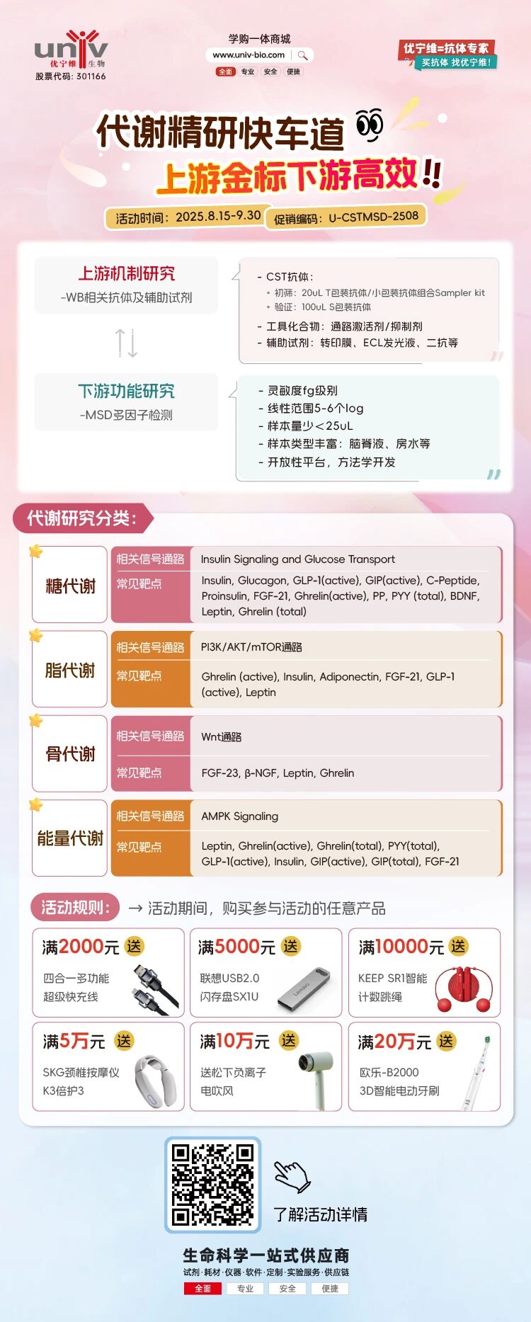 通过以上内容我们了解到代谢研究领域热点及重点知识背景,优宁维能提供代谢研究的一站式高效解决方案,请点击下方海报或扫描二维码查看更多细节~