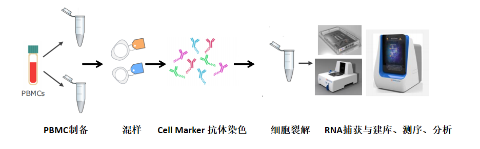 样本混样:多个样本混合处理2×10^5 cells per sample,采用BD Rhapsody的混样试剂盒(BD single cell multiplexing kit-human,Catalog no:633781)