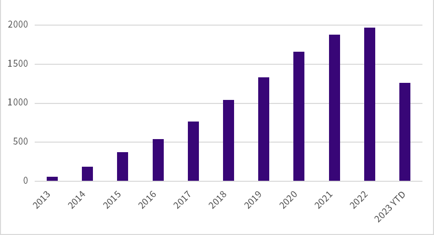 以CRISPR系统为例,全球有大量的客户使用Lonza Nucleofector™核转染系统开展基于CRISPR系统的基因编辑相关工作并发表文章且逐年递增。
